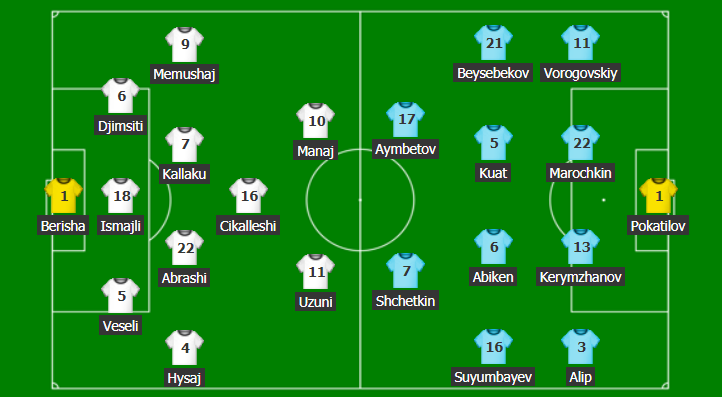 Ndryshe në bazë të emrave të futbollistëve dhe renditjes së tyre, Edi Reja sonte kundër Kazakistanit do të përdorë skemën 3-4-1-2, me dy sulmuesit e rinj Manaj dhe Uzuni, që do të tentojnë të shënojë në portën e mysafirëve.