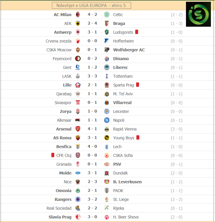 Fitore identike 3:2 edhe për Bajer Leverkusenin dhe Gllazgou Renxhersin, derisa fitoreve iu gëzuan edhe PSV, Molde, Omonia dhe Slavia Praga.