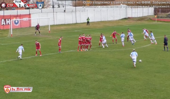 Në një ndeshje ku vendasit kishin më shumë nga loja, mysafirët i shëptuan disfatës falë eurogolit të shënuar nga Gjorgji Stoilov në minutën e 72-të, kur numri 8-të i Akademia Pandev në mënyrë spektakolare ekzekutoi goditjen e lirë nga një distancë prej rreth 26 metrash, duke shënuar në këndin e djathtë lartë të portierit Djuriç.