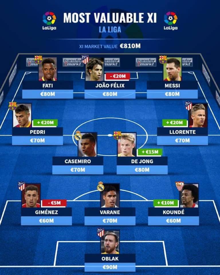 Mediumi i njohur “Transfermarkt” ka publikuar 11shen më të shtrenjt në La Liga. Kjo 11-she është e dominuar nga futbollistë të Atletiko Madridit dhe Barcelonës, dy skuadra këto që për momentin kryesojnë La Ligan.