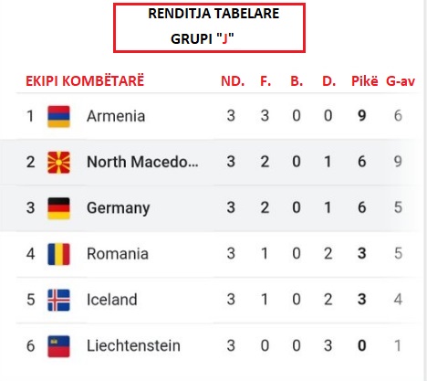 Armenia mori fitoren e tretë radhazi dhe kryeson grupin me 9 pikë, ndërsa pas tyre me 6 pikë renditet Maqedonia e Veriut.