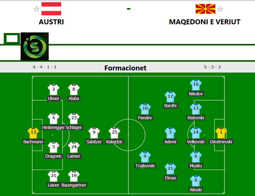 Ndeshja Maqedoni e Veriut-Austri starton në ora 18:00, ndërsa më poshtë juve mund të shihni formacionet e të dyja kombëtareve. (infOSport.mk)
