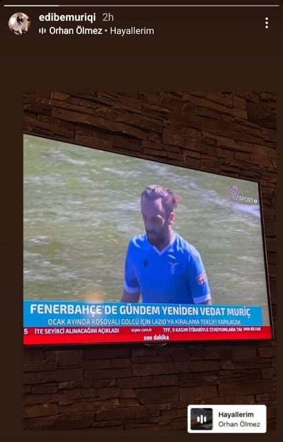 Zërat e këtillë duket se i vulos edhe bashkëshortja e saj, teksa nuk ka nguruar të postojë një foto në “insta-story”, ku shikohej një kronikë në mediat turke që flasin për një kalim të mundshëm të Muriqit te Fenerbahçe.