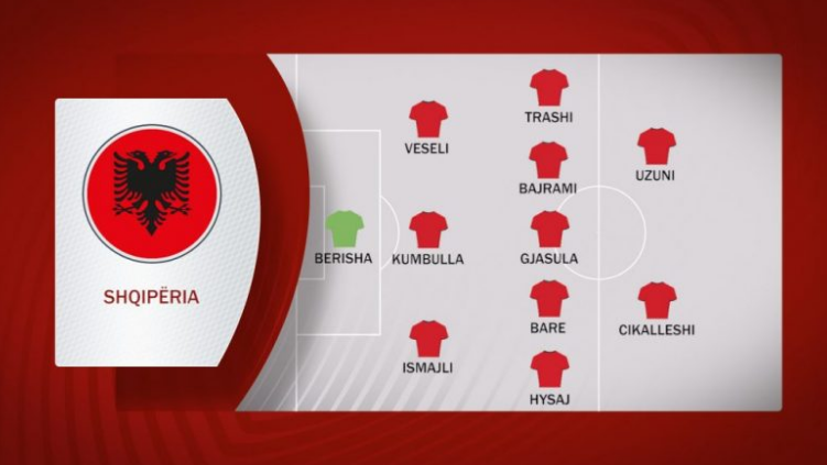 Ndërsa kur sulmon Shqipëria, rreshtimi pritet të transformohet 3- 4-3, ku Gjasula dhe Bare kanë kontrollin e qendrës së mesfushës, ndërsa Bajrami shikohet si një furnizues për dyshen sulmuese.