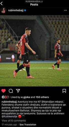 “Aventura ime me KF Shkëndija mbaroi. Falënderoj shumë stafin drejtues, stafin e trajnerëve që punova, shokët e skuadrës dhe normalisht tifozët e mrrekullueshëm Ballistat. Shpresoj që kjo të jetë një mirupafshim, jo një lamtumirë. Suksese në të ardhmen fcShkëndija” – ka shkruar Hebaj.