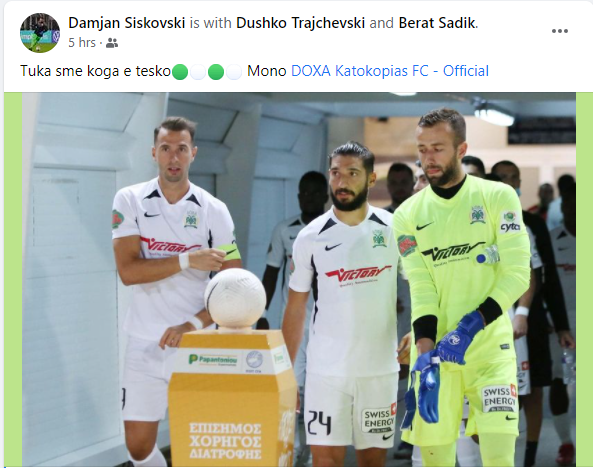 Ndeshja e javës së 15-të në elitën e futbollit qipriot midis Achnas dhe Doxa kaloi në regji të lojtarëve shkupjan, Damjan Shishkovski, Dule Trajçevski dhe Berat Sadik, njofton “infOSport.mk”.