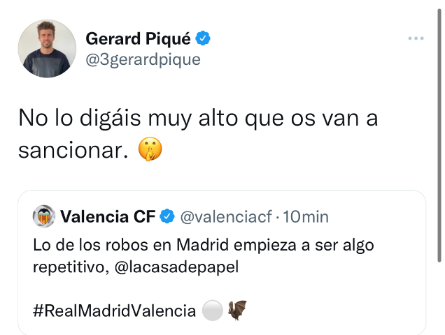 I menjëhershëm ka qenë reagimi i faqes zyrtare të Valencias në “Twitter”, duke aluduar se kishte një “vjedhje të zakonshme” në Madrid.