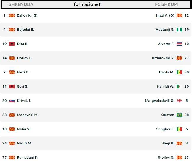 Formaconet zyrtare, Shkëndija – FC Shkupi