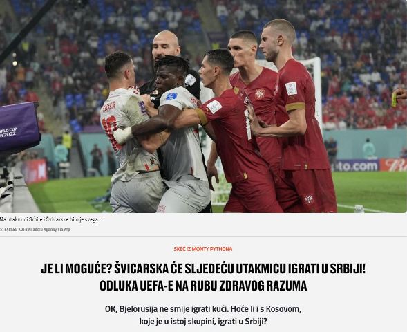 “A është e mundur? Zvicra ndeshjen e radhës do ta luajë në Serbi! – Në rregull, Bjellorusia nuk mund të luajë në shtëpi. A do të luajnë edhe në Serbi me Kosovën që është në të njëjtin grup?” – ka shkruar gazeta kroate.