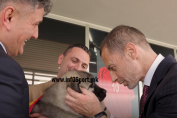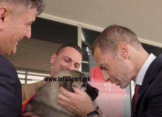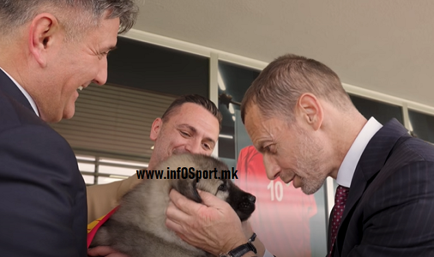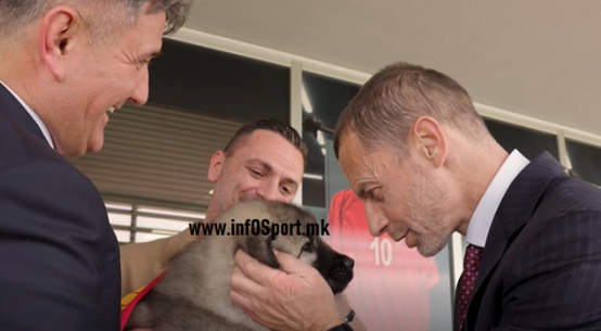 Omeragiç me një dhuratë speciale për Çeferin, një qenush sharri (VIDEO)